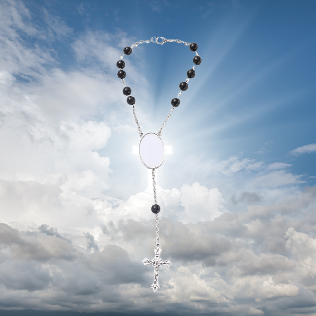 Con FaithMemory™ puoi personalizzare il centro del rosario con una foto a colori: una persona cara, un ricordo speciale o un simbolo spirituale che ti accompagna ogni giorno nel tuo cammino di fede.